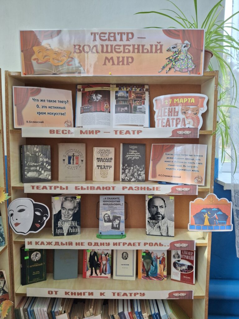 К этому событию в Фокинской сельской библиотеке была оформлена книжная выставка «Театр – волшебный мир». На выставке представлена литература об уникальном и неповторимом мире театра, его истории, разновидностях, выдающихся театральных деятелях, познакомиться с авторами пьес, которые легли в основу знаменитых постановок, известными театральными актерами.