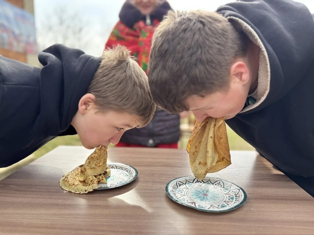 Конечно же, праздник не обошёлся без поджаристых блинов и сладкого чая.