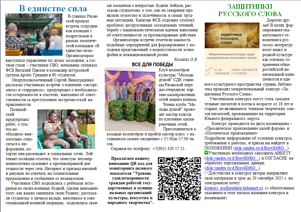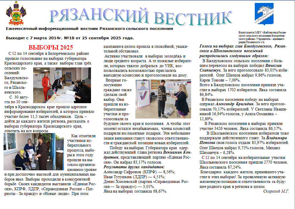 25.09.2025 - Газета, Краеведение, Краеведение Рязанской СБ, Мероприятия, Мероприятия Рязанской СБ, Новости, Рязанский вестникРязанский вестник. Выпуск N°18 от 25 сентября 2025 года. https://vk.com/wall-202275261_2763 https://ok.ru/profile/580519907980/statuses/158717599884684 https://t.me/c/2002491416/3092 Просмотров: 130