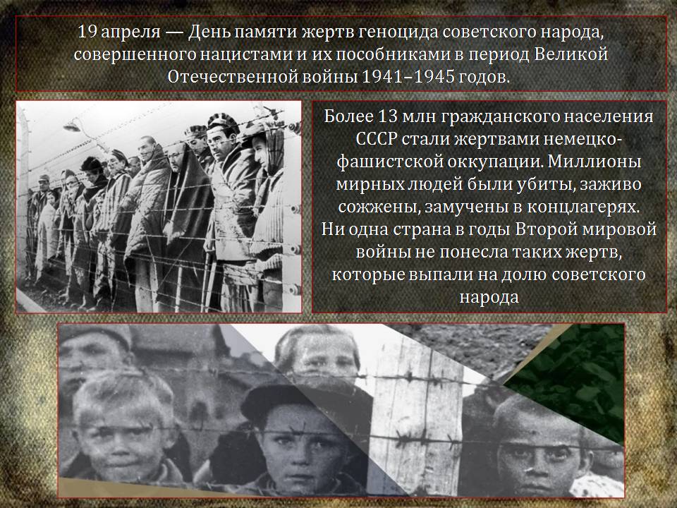 народа, совершенного нацистами и их пособниками в период Великой Отечественной войны 1941 — 1945 годов.
